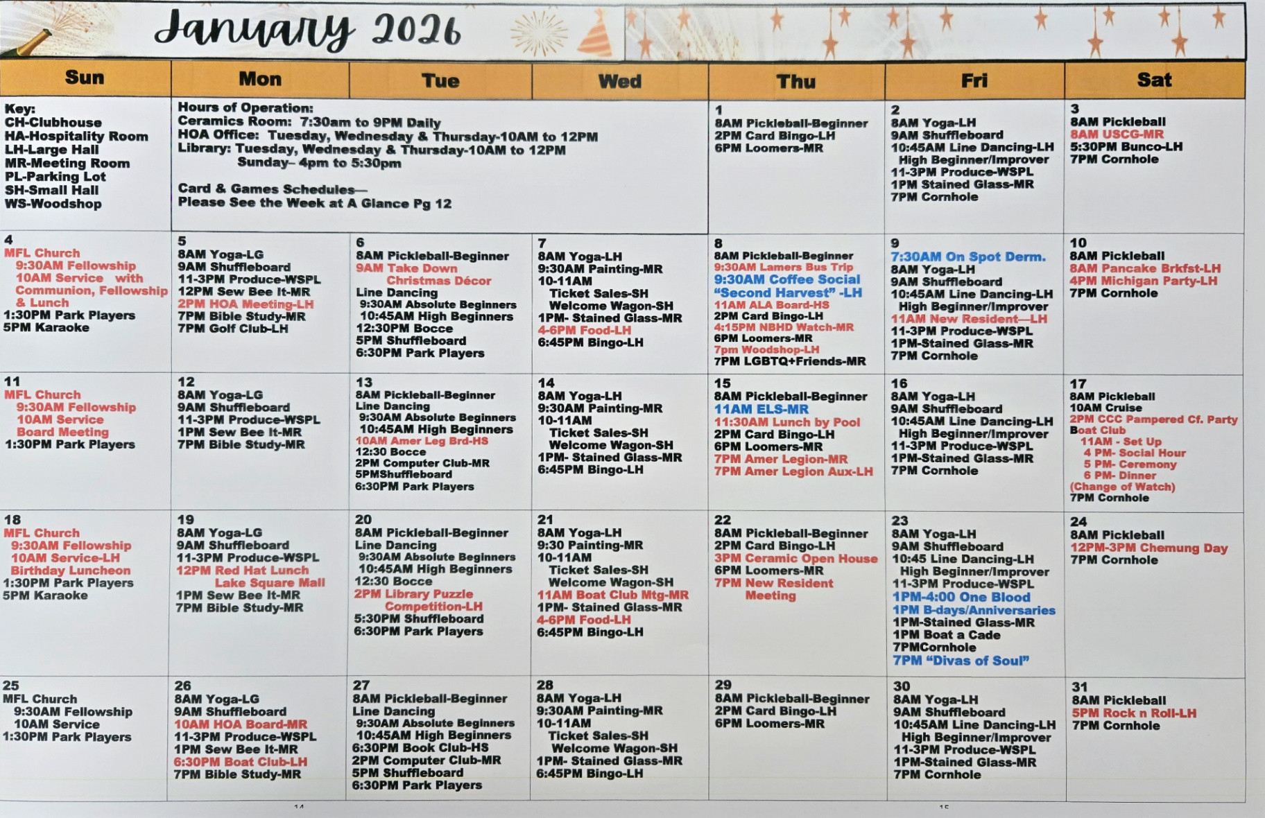 MFL Monthly Activity Calendar